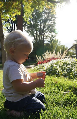 Here are a few (thousand) shots from some playtime in the yard. I'm having so much fun with these boys and this camera! I think the above shot is pure perfection. Other than the crop, I haven't altered it at all. The smile, the belly grab, the encircling background, the sun burst - so yummy!
